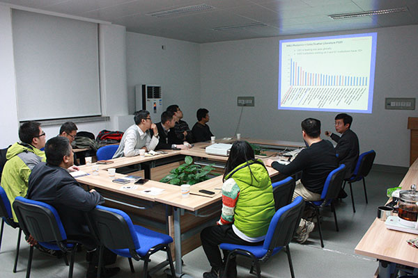 2014年12月24日下午,华为2012实验室器件工程部首席科学家姜放等到化学所绿色印刷实验室交流并商谈合作。宋延林研究员做了纳米材料绿色印刷技术研究的报告,姜总介绍了华为在新材料和新技术方面的需求,希望双方能密切合作,为中国战略新兴产业的发展提供原创性技术。双方技术人员进行了热烈讨论。