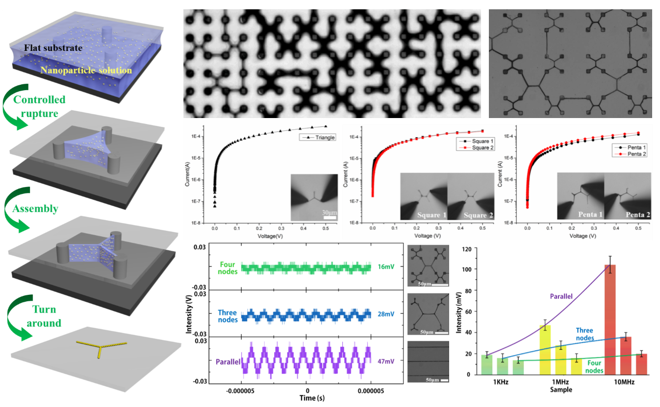 A spontaneous process is demonstrated to assemble nanoparticles into optimal interconnect, as natural systems spontaneously figuring out the shortest path. The optimal interconnect leads to a 65.9% decrease in electromagnetic interference, a 17.1% decrease in delay, and a 24.5% decrease in energy-delay. It will be of great significance for interconnect fabrication of versatile electronic circuits. ( Paper: Meng Su, Zhandong Huang, Yong Huang, Shuoran Chen, Xin Qian, Wenbo Li, Yifan Li, Weihua Pei, Hongda Chen, Fengyu Li,* and Yanlin Song*, Adv. Mater. 2016, DOI: 10.1002/adma.201605223.)