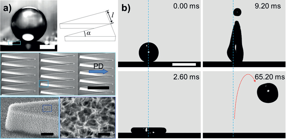 (Paper: Jie Liu, Haoyuan Guo, Bo Zhang, Shasha Qiao, Mingzhe Shao, Xianren Zhang, Xiqiao Feng, Qunyang Li, Yanlin Song, Lei Jiang, Jianjun Wang. Guided Self‐Propelled Leaping of Droplets on a Micro‐Anisotropic Superhydrophobic Surface.Angewandte Chemie International Edition, 2016.55, 4265 –4269)