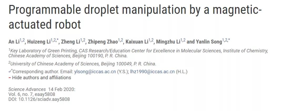 中科院化学所宋延林研究员团队实现液滴的程序化操控--Science Advances